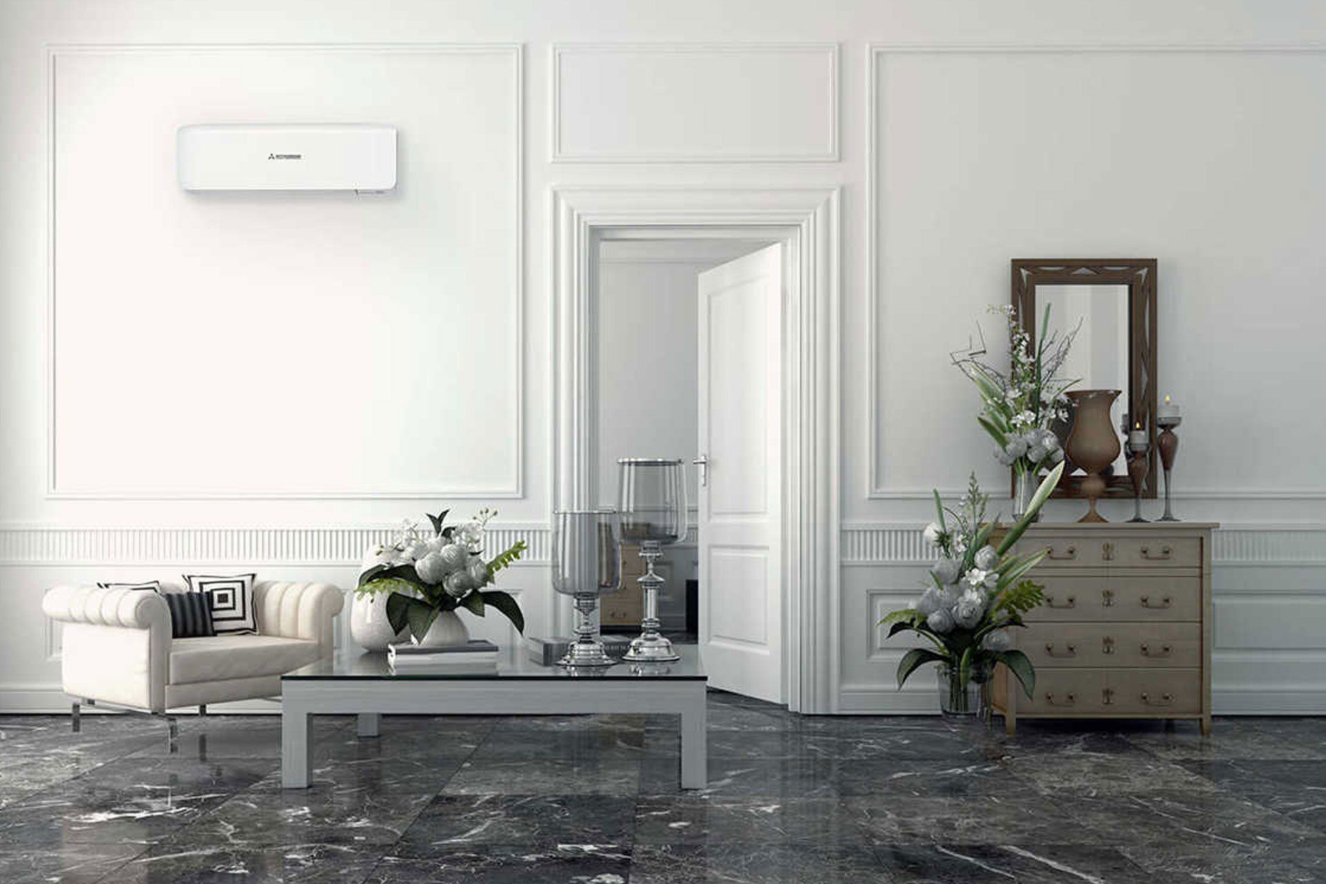 Elegant och liten, Netsu är en värmepump som lämpar sig för små och medelstora rum och kontor. Den är elegant och tar inte mycket plats på väggen.